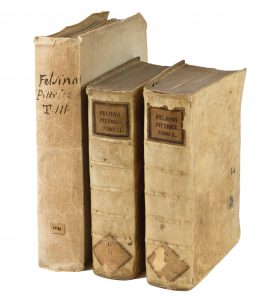 4 parti in 2 volumi in-4° (mm 214x163). Pagine [16], 581, [3]; [4], 606, [2]. Con 43 ritratti in ovale incisi in legno a piena pagina nel testo entro graziose cornici floreali e architettoniche, 8 cornici vuote e molte illustrazioni xilografiche nel testo anche a tutta pagina. Fregio ai frontespizi, testatine, capilettera e finalini, alcuni anche a piena pagina. Arrossature sparse, più evidenti a poche carte dei fascicoli Ddd e Ggg del primo volume e in principio del secondo, lacuna a carta Dddd4 (spesso mancante), con perdita di parte del testo. Legatura coeva in piena pergamena rigida con titoli manoscritti su tassello cartaceo applicato al dorso. SI AGGIUNGE: Crespi Luigi, Vite de' pittori bolognesi non descritte nella Felsina pittrice. Tomo terzo... In Roma: nella stamperia di Marco Pagliarini, 1769. In-4° (mm 266x194). Pagine XX, 344, + 44 carte di ritratti in medaglione fuori testo incisi in rame. Frontespizio in rosso e nero, con stemma del dedicatario inciso in rame, testatine calcografiche e finalini incisi sia in legno che in rame. Lievi arrossature sparse ma nel complesso buon esemplare, intonso. Legatura in cartonato coevo con dorso danneggiato. Nota manoscritta al frontespizio. Prima edizione, in seconda tiratura di questa opera importantissima per la storia dell'arte bolognese e italiana; il nostro esemplare comprende - in legatura non omogenea - anche il tomo terzo, edito a Roma nel 1769 a cura di Luigi Crespi. Cfr. Brunet III 1349-50; Cicognara 2310: «Prima edizione della più importante storia della pittura bolognese. Di particolare rilievo sul piano documentario ed anche critico l'amplissima sezione dedicata a Guido Reni, al Mitelli, ai Procaccini e ai Carracci della cui famiglia è presente a p. 457 del vol. I l'albero genealogico con una veduta di Bologna disegnata da Agostino Carracci; alle pp. 407-23 sono inoltre riprodotte le figure e il testo del volume del Benacci sui funerali di Agostino»; Graesse IV, 356; Lozzi 654; Parenti, Prime ediz. italiane 326; Piantanida 4382 (per la tiratura): a p. 471 del primo volume si legge la frase «nella savia per non dir umile idea d'un Boccalaio Urbinate», presente nei rari esemplari della seconda tiratura e poi soppressa nella versione definitiva; Schloesser-Magnino 259. Per il terzo tomo, pubblicato quasi un secolo dopo dal Crespi a supplemento all'opera del Malvasia si veda Lanzi V, 194: «D. Luigi il Canonico [...] molto ha scritto in pittura; le vite de' pittori bolognesi, o sia il terzo tomo della Felsina Pittrice edito nel 1769, notizie di pittori ferraresi e di romagnuoli [...]. La storia della pittura gli è obbligata quanto a pochi di questo secolo».