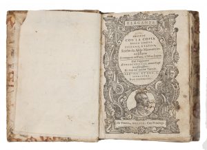 Manuzio Aldo, Eleganze insieme con la copia della lingua toscana, e latina [...]. Con l'aggiunta di 488 nuovi capi... Venezia: s.e. [Aldo Manuzio il giovane], 1594.