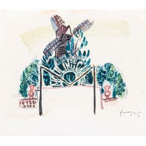Ils comportent tous une peinture originale de Daragnès, à la gouache, la nôtre, signée, représentant le Moulin de la Galette.
