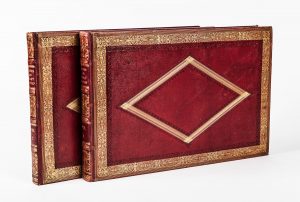 HEARNE (Thomas). Antiquities of Great Britain, illustrated in Views of Monasteries, Castles, and Churches, Now Existing. Londres, T. Cadell, W. Davies, 1807 ; 2 vol. in-folio à l’italienne, maroquin rouge à grains longs orné d’un large...