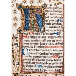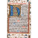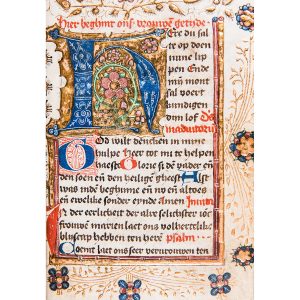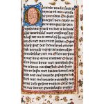 [12] ff., 1 f. bl., [132] ff., 1 f. bl.Beau manuscrit flamand en gothique bâtarde, orné de 6 grandes lettrines en couleurs rehaussées à l’or avec bordures végétales peintes et rehaussées à l’or.