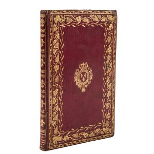 LA BOÉTIE (Étienne de). De la servitude volontaire. Paris, Paul Daubrée et Cailleux, 1835 ; in-8, maroquin à long grain rouge, sur les plats encadrements multiples de motifs dorés, armes dorées au centre des plats, dos lisse orné de motifs...