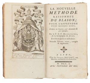 Menestrier Claude François, La nouvelle methode raisonnee du blason. A Lyon: chez les freres Bruyset, 1750.
