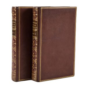LA FONTAINE (Jean de). Contes et Nouvelles en vers. Paris, Plassan, Chevalier, 1792 ; 2 vol. in-8, maroquin brun châtaigne, trois filets dorés en encadrement sur les plats, dos lisse orné de motifs dorés, pièce de titre et tomaison brune,...