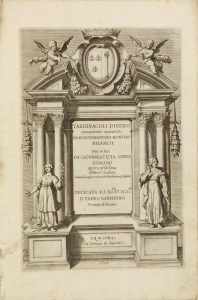2 tomi legati in 1 volume in-folio (mm 384x256). Carte [1] di frontespizio architettonico, [1] di Dedica, [1] di ritratto dell’Autore, [1] di ritratto dell’Editore + 66 tavole numerate 1-66, il tutto inciso in rame. Diverse fioriture e tracce d’uso marginali, un lavorio di tarlo al margine esterno delle carte che non interessa l’inciso e alcuni fori di tarlo all’ultima carta. PRECEDUTO DA: Id., Tabernacoli diversi nouvamente (sic!) inventati […]. Opera utilissima à pittori e scultori, et à qual si voglia persona, che d'architectura si diletta. In Roma: G. Battista Soria, 1628. Carte 24 (di 27) con frontespizio architettonico, Dedica, ritratti dell’Autore e dell’Editore e 18 tavole numerate, tutto calcografico. Alcuni strappetti e fioriture, una nervatura di tarlo marginale, senza perdita d’inciso. Legatura in piena pergamena coeva con vecchia collocazione al piatto anteriore. Dorso quasi completamente slegato, mancanze consistenti ai piatti, lavori di tarlo ai contropiatti. -