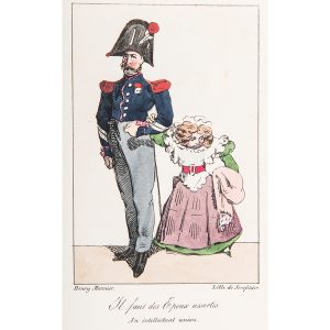 Recueil de 41 (avec le titre) planches lithographiées par Senefelder d’après Henry Monnier, rehaussées à l’aquarelle et montées sur onglet.