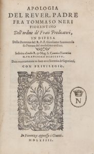 Neri Tommaso, Apologia [...] in difesa della Dottrina del R.P.F. Girolamo Savonarola... In Fiorenza: Appresso i Giunti, 1564.