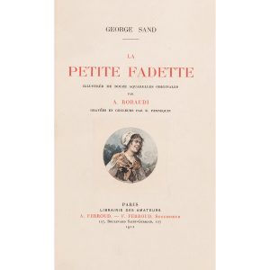 [ROBAUDI].— SAND (George). La Petite Fadette. Paris, Ferroud, 1912 ; in-8, reliure janséniste maroquin gris éléphant, dos lisse, non rogné, couvertures et dos conservés, [Gonin], dos légèrement assombri.
