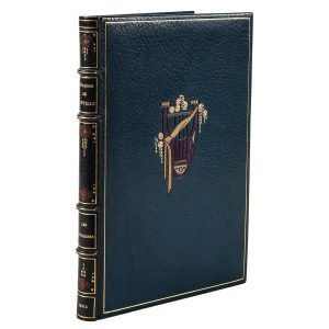 [ROCHEGROSSE].— BANVILLE (Théodore de). Les Princesses. Paris, A. Ferroud. F. Ferroud successeur, 1904 ; pet. in-4, maroquin bleu gentiane, filet doré en encadrement, composition de maroquins colorés mosaïqués au centre des plats (lyre...