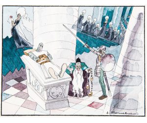 Exemplaire enrichi d’une suite en noir des compositions et de 3 dessins originaux signés et aquarellés par Jacques Touchet (le sujet : 11 x 14,8 cm ; la feuille : 21,5 x 25,3 cm).