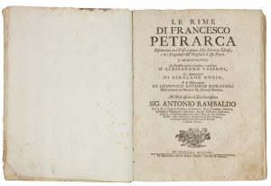 Petrarca Francesco, Le rime riscontrate co i testi a penna della Libreria Estense, e co i fragmenti dell'originale d'esso poeta. S'aggiungono le Considerazioni [...] d'Alessandro Tassoni, le Annotazioni di Girolamo Muzio, e le Osservazioni di...