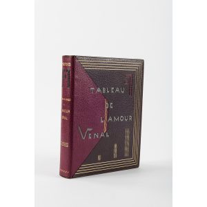 [VERTÈS].— CARCO (Francis). L’Amour Vénal. Paris, s. n., 1926 ; in-4, maroquin lilas-gris, sur les plats encadrement de 4 filets dorés, décor d’une large pièce géométrique de maroquin poupre traversant le dos et bordée de filets...
