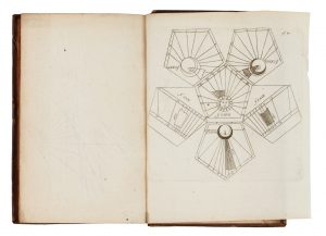 In-8° (mm 165x90). Pagine [16], 312 [i.e. 294], 2 bianche + 72 carte di tavole incise in rame fuori testo, 2 ripiegate, in fine. Con 1 antiporta incisa in rame, capilettera, testatine e finalini xilografici. Errori nella numerazione, saltate le pagine 81-100 e ripetute le pagine 259-60, ma testo ben completo. Alcuni fascicoli leggermente bruniti, una piccola mancanza ab origine nell'angolo esterno di una carta ma bell'esemplare, con le tavole in fresca e nitida tiratura. Legatura in pieno vitello nocciola con cornice di duplice filetto impressa a secco ai piatti e titoli dorati su tassello al dorso a 4 nervi. Tagli rossi. Legatura lisa, con rotture alle cerniere e piccole mancanze alle cuffie. Ex-libris Macclesfield Library applicato al contropiatto anteriore. Cfr. Houzeau-Lancaster 11455; Polak 8584; Sotheran 14635. Trattato di gnomonica assai celebre, pubblicato per la prima volta nel 1641, in cui si tratta tanto degli orologi solari quanto di quelli lunari, e della loro costruzione su ogni sorta di superficie.