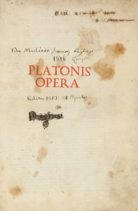 Plato, Opera. (Al colophon:) Venetiis: a Philippo Pincio, 1517, die 22 aprilis.