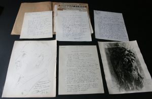 – L.A.S. daté Chatellerault 30/08/1957 adressée au commandant Validire à propos de la petite vierge qu'il a achetée "Celle-ci a été sculptée dans un chevron récupéré dans la très vieille rue de l'Indre à Châteauroux, lorsqu'une vieille maison du XIVe siècle appartenant à un pharmacien ami, fut abattue. D'autre part, cette Vierge est la PREMIERE qui sourit..." une page et demi in-folio.