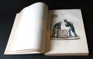 27 - [CARICATURES] Album de caricatures et d'estampes XIXe contenant environ 100 pl. en noir et en couleurs dont : TRAVIES Monsieur Mahieux 18 pl. en coul. et 1 en noir – PIGAL Scènes de société : 6 pl. couleurs – Scènes populaires : 8 pl....