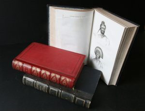 49 - DUMONT D'URVILLE Voyage autour du monde nouv. éd. – Paris, Furne, 1853 – 2 vol. gr. in-8 : 44 pl. et 2 cartes dépliantes en couleurs – demi-chagrin bleu, dos à faux-nerfs orné de filets dorés (Quinet) (insolé, frotté, rares...