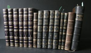aubergine (mouillures) – VIARDOT Essai sur l'histoire des arabes et des mores d'Espagne – Paris, Paulin, 1833 – 2 vol. in-8 : demi-basane verte – SILVESTRE DE SACY Recherches historiques et critiques sur les mystères du paganisme – Paris, De Bure, 1817 – 2 vol. in-8 : demi-veau brun – LA HUGUERYE (Michel de) Ephéméride de l'expédition des allemands en France (Aout-Septembre 1587 ) – Paris, Renouard, 1892 – in-8 demi- chagrin noir.