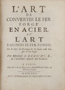 Reaumur René-Antoine Ferchault, L'Art de convertir le fer forgé en acier et l'Art d'adoucir le fer fondu... A Paris: chez Michel Brunet, 1722.