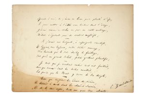 ♦ Unique manuscrit d'un poème de jeunesse publié après la mort de Baudelaire.