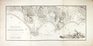 2 volumi di diverso formato: 1 volume di testo in-8° (mm 230x150). Pagine [12], 486, 2 bianche + 1 carta di tavola fuori testo più volte ripiegata. Usuali diffuse fioriture dovute al tipo di carta. Legatura coeva in mezza pelle con piatti marmorizzati e tagli spruzzati di blu; titoli dorati entro tassello al dorso. Minimi difetti. 1 volume di Tavole e prospetti statistici in-folio (mm 545x390). Carte di tavole 27, delle quali 1 più volte ripiegata. Il volume con l'atlante dovrebbe constare anche di 8 carte di prospetti, che nel nostro esemplare sembrano non essere mai state legate. Fioriture sparse e piccoli strappetti marginali, ma belle tavole non rifilate e in fresca e nitida tiratura. Brossura editoriale con lacuna nell'angolo superiore esterno, piccole rotture e mancanze sul dorso. Conservato entro custodia in mezza tela con punte, piatti marmorizzati e titoli su tassello al dorso Edizione uscita nello stesso anno della prima, cfr. Fumi n. 3169; vedi anche Barabesi 2230 e Lichtenthal 227. L'atlante, che dovrebbe contenere Tavole e Prospetti statistici appartenenti alle memorie sul bonificamento..., nel nostro esemplare sembra comporsi ab origine solo delle tavole: mancano cioè i prospetti della spesa e durata dei lavori di bonifica; tuttavia Graesse VII, 30 nel citare la nostra edizione dice che l'atlante si compone delle sole tavole. Le 27 belle tavole incise o litografate da F. Francolini, G. Gozzini e Balatri su disegni dello stesso Francolini e di Renard raffigurano le principali costruzioni e modifiche apportate al territorio, i macchinari e gli strumenti utilizzati, prospetti idro-geologici della regione, e sono precedute dalla grande Carta geometrica di quella parte delle Maremme Toscane che è compresa tra la foce della Cecina ed i monti dell'alberese con bella allegoria incisa da Daverio su disegno di Pianigiani.