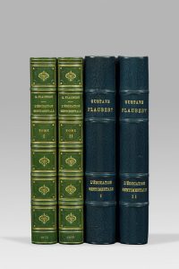 FLAUBERT (Gustave). L'Éducation sentimentale. Histoire d'un jeune homme. Paris, Michel Lévy frères, 1870. 2 volumes in-8, maroquin bleu marine, janséniste, doublure de maroquin bleu serti d'un filet doré, gardes de soie brochée, doubles...
