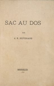 HUYSMANS (Joris-Karl). Sac au Dos. Bruxelles, s.n., 1878. Plaquette in-12, maroquin rouge, janséniste, dos lisse portant le titre doré en long, encadrement intérieur de deux triples filets dorés se croisant de loin en loin, doublure et gardes...