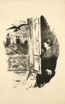 Pour Le Corbeau, second livre illustré par ses soins, Manet exécute six beaux dessins à l'encre autographique, dont quatre compositions au lavis à pleine page dans lesquelles il transpose les épisodes marquants du poème: l'amant inconsolable de Lénore réveillé de ses songeries par les coups mystérieux frappés aux abords de sa chambre; le personnage, qui vient d'ouvrir sa fenêtre et d'en pousser le volet, en train de contempler avec saisissement l'entrée du Corbeau ; le colloque avec l'oiseau lugubre, perché au-dessus de la porte, sur le buste de Pallas, et proférant son glacial «Jamais plus»; l'apparition, enfin, dans la chambre où la lampe la projette, de la grande ombre noire qui y règne désormais en maîtresse (cf. Étienne Moreau-Nélaton, Manet raconté par lui-même, 1926, t. II, pp. 26-27).
