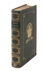 2 parti in 1 volume in-folio (mm 298x190). Pagine [10] (di 12, manca *2), 707, [62]. LEGATO CON: Valeriano Pierio, Castigationes et Varietates virgilianae lectionis. Parisiis: Ex officina Roberti Stephani, 1529. Pagine 205 [i.e. 199], 25.  Marca tipografica al primo frontespizio, frontespizo della seconda parte interamente inciso in legno. Grandi capilettera incisi su sfondo nero puntinato. Strappo maldestramente restaurato a carta f1, senza tuttavia perdita di testo, tarlo nel bordo superiore bianco dei fascicoli Pp-Xx, lievi fioriture sparse. Legatura moderna alle armi in percallina verde, con cornici concentriche impresse in oro e a secco e fregi floreali accantonati interni. Titoli impressi in oro al dorso, roulette a motivi fogliati alle unghiature e tagli dorati.  Ex-libris Bibliotheca Cortina al contropiatto anteriore, timbro di antico possessore al recto e al verso del frontespizio e annotazione manoscritta. Bella e importante edizione dell'opera virgiliana, per la quale Estienne impiegò interamente per la prima volta il suo nuovo set di caratteri con tutta probabilità realizzato da Claude Garamond e stampò il primo testo critico dell'importante commento di Servio: «It is in this important edition of Virgil that Robert Estienne first made full use of the three sizes of his new roman type, possibly cut by Claude Garamond [...]. It became at once the most distinctive and influencial French roman of the century, and set a new standard of typographical excellence  [...]. For this handsome edition of Virgil Robert Estienen produced the first critical text of the important commentary of Servius; he was obviously quite proud of this improved text» (Schweiger n. 45). Esemplare completo della seconda parte, annunciata nel titolo e con proprio frontespizio, spesso mancante; cfr. Dibdin II, 545: «This edition was the basis of many subsequent ones [...]. The Castigationes Pierianae, first printed in 1529, are found in a second volume accompanying the present edition: they are, however, very frequently missing»; Adams V -76; Mortimer, Harvard French II 539; Renouard, Estiennes 37.11: «Imprimé en beaux caracteres neufs et d'une exécution fort bien entendue».