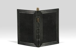 NOUVEAU (Germain)]. HUMILIS (G. N.). Savoir aimer. Paris, Publié par Les Amis de l'Auteur, 1904. In-12, maroquin noir, double encadrement d'un jeu de sept filets à froid, dos orné de compartiments de filets à froid, tête dorée, dentelle...