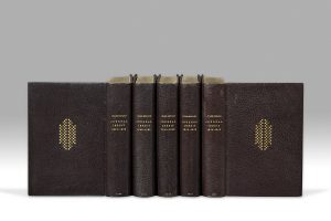 RENARD (Jules). Journal inédit. 1887-1910. Paris, Typographie François Bernouard, 1925. 5 volumes in-8, maroquin aubergine, plats ornés au centre d'un jeu de pointillés dorés formant cartouche de forme hexagonale, dos lisse portant le titre...