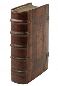 In-folio (mm 295x195). Pagine [124], 974. Capilettera xilografici e marca dello stampatore in fine. Un lieve alone d'umidità a poche carte centrali, ma ottimo esemplare, fresco e marginoso. Legatura coeva in piena pelle montata su assi di legno, con dorso restaurato e rimontato e piccole abrasioni ai piatti. Coppia di cornici concentriche impressa a freddo ai piatti con fregi floreali incorniciati da filetto. Resti di fermagli. Ex-libris Bibliotheca Hageveldensis al contropiatto anteriore. Cfr. Graesse VII, 338: «Fabricius ne s'est pas servi de nouveaux mss, mais le texte de Servius et de Donatus est ici rétabli de nouveau»; Schweiger III, 1661.