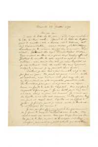 RIMBAUD (Arthur). Lettre autographe à sa soeur Isabelle, signée Rd, datée Marseille 29 juin 1891, 1 page et demie recto-verso sur un feuillet in-4 (263 x 204 mm), enveloppe timbrée jointe, sous chemise demi-maroquin noir moderne.