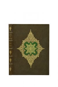 intérieure, doublure et gardes de soie moirée vert émeraude, tranches dorées sur marbrure, étui (Auguste Petit/Wampflug).