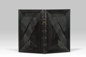 s'entrecroisant, dos à nerfs orné de filets à froid, titre doré, doublure de veau rouge serti d'un filet doré, gardes de soie moirée noire, tranches dorées sur témoins, couverture, étui (Semet & Plumelle).