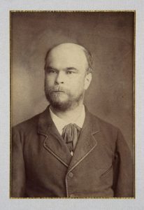 Beau portrait de Verlaine aux abords de la quarantaine, à l'époque de la publication des Poètes Maudits. Il y apparaît de buste, portant une petite lavallière.