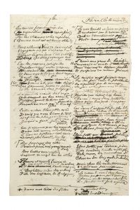 Manuscrit de premier jet, inconnu, avec de très nombreuses ratures, corrections et variantes inédites.