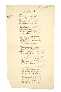 VERLAINE (Paul). À M[ademoise]lle? Poème autographe, 1 page in-8 (200 x 114 mm), à l'encre brune sur papier vergé, sous chemise demi-maroquin noir moderne.