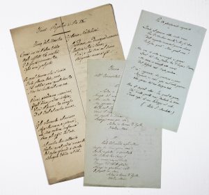 Manoscritto a inchiostro seppia. Dimensioni: mm 280x185. SI AGGIUNGONO: Inno del Maestro Tiberio Natalucci - Inno del Conte G. Marchetti - Inno all’immortale Pio IX (senza nome dell’autore). Manoscritto a inchiostro seppia anche su carta azzurrina. Dimensioni varie. I e II DOCUMENTO: Molti musicisti diedero in varia misura il loro contributo alla causa nazionale italiana. Gioachino Rossini, considerato all’epoca un estremo conservatore, fu uno di questi. Nel luglio del 1846, a Bologna, in occasione della concessione dell’amnistia ai prigionieri politici da parte di Pio IX, preparò un inno dal titolo Grido di esultazione riconoscente al Sommo Pontefice Pio IX. Il brano, che è una rielaborazione del Coro dei Bardi nella Donna del lago, venne eseguito sulla scalinata della basilica di San Petronio a Bologna il 23 luglio. Il testo poetico era stato scritto dal canonico Gaetano Golfieri. Nel nostro manoscritto, l’inno di Rossini è mancante dell’ultima strofa: «O fratelli, esultiamo, esultiamo, / grazie, grazie risponda ogni cor. / Ecco il giorno ed il giorno aspettato, / ecco il giorno di pace e d’amor». Gli incipit degli altri brani sono i seguenti: Inno di Natalucci Come un’iri l’almo Iddio – Inno di Marchetti Quando al governo della santa nave – Inno di ignoto Salve, o, di Dio, Pontefice (in realtà il testo poetico dovrebbe essere dell’Avv. Emanuele Celesia e musica di Recuzati).