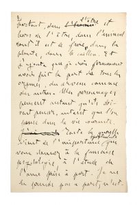 Ce brouillon comporte de nombreuses ratures et corrections qui montrent l’importance que cette déclaration de principes avait pour l’écrivain. La lettre définitive envoyée par Zola se trouve à la Brown University Library, USA.