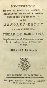 1794. LIBRO: BERART, SERAPIO DE: MANIFESTACION EN QUE SE PUBLICAN MUCHOS Y RELEVANTES SERVICIO Y NOBLES HECHOS CON QUE HA SERVIDO A SUS SEÑORES REYES LA EXCELENTISIMA CIUDAD DE BARCELONA, Singularmente en el sitio horroroso que...