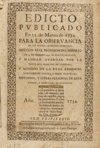 1734. FOLLETO: (BARCELONA-COMERCIO). EDICTO PUBLICADO EN 22 DE MARZO DE 1734 PARA LA OBSERVANCIA DE LOS NUEVOS ARANZELES GENERALES QUE CON REAL PROVISION DEL CONSEJO DE 4 DE FEBRERO 1734 SE HAN ESTABLECIDO, Y MANDAN GUARDAR POR LA...