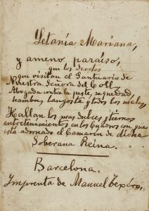 1790 ca. MANUSCRITO: (BARCELONA- EL COLL). LETANÍA MARIANA Y AMENO PARAÍSO QUE LOS DEVOTOS QUE VISITAN EL SANTUARIO DE NUESTRA SEÑORA DEL COLL, ABOGADA CONTRA LA PESTE, SEQUEDAD, HANBRE, LANGOSTA Y TODOS LOS MALES, HALLAN LOS MÁS...