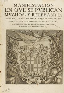 1697. LIBRO: (BARCELONA-GUERRA DE SUCESIÓN). MANIFESTACION, EN QUE SE PUBLICAN MUCHOS, Y RELEVANTES SERVICIOS, Y NOBLES HECHOS, CON QUE HA SERVIDO A SUS SEÑORES REYES LA EXCELENTISSIMA CIUDAD DE BARCELONA, SINGULARMENTE EN EL SITIO...