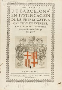 PRERROGATIVA QUE TIENE QUE CUBRIRSE Y SENTARSE SUS CONSELLERS... 1632. Folio. Con notables galerías. [Más:]LA CIUDAD DE BARCELONA DIZE: QUE HALLANDOSE CONDECORADA CON REAL PRIVILEGIO... 1681. Folio. [Más:] LA CIUDAD DE BARCELONA, REPRESENTADA EN SUS CONSELLERES, Y CONSEJO DE CIENTO, INSIGUIENDO SU DELIBERACION HECHA A LOS 11 DE MARÇO... 1682. Folio. [Más:] FESTIVOS Y MAGESTUOSOS CULTOS QUE LA NOBILISSIMA... CIUDAD DE BARCELONA... 1686 DEDICO A SU INVICTA HIJA, PATRONA, VIRGEN... 1686. 8º mayor. Palau 90897. [Más:] SERMON EN FIESTA DE ACCION DE GRACIAS POR LA INSIGNE VITORIA DE LAS ARMAS IMPERIALES EN LA EXPUGNACION DE BUDA. AÑO 1686. 1686. 8º mayor. [Más:] RELACION VERDADERA DEL ARRIBO DEL SEÑOR ARCHIDUQUE EN PORTUGAL. 8º menor. [Más:] LO REY NOSTRE SENYOR (QUE DEU GUARDE) AB LA REAL CARTA DE 3 DE SETEMBRE PASSAT... 1704. 8º mayor. [Más:] BAYLE EL MEDICO DE PORTUGAL. 1700 ca. 8º. [Más:] COPIA DE UNA CARTA ESCRITA AL PRINCIPAT DE CATALUNYA AB LA QUAL... 1701 ca. 8º. [Más:] INVECTIVA AL POLITICO GOVIERNO DE DON FRANCISCO VELASCO. 1705. 8º. [Más:] PREGON SONORO, EN QUE MANDA LA MAGESTAD DE NUESTRO CATOLICO MONARCA CARLOS TERCERO AL DUQUE DE ANJOU. 1705. 8º. [Más:] NUEVA RELACION, Y CURIOSO ROMANCE EN ALABANZAS A NUESTRO ADORADO MONARCA CARLOS TERCERO... 1703 ca. 8º. [Más:] NORABONA A LA EXCELLETINSSIMA CIUTAT DE BARCELONA, PER HAVER VINGUT EN ELLA LO AUGUSTO SENYOR DON CARLOS III. 1704 ca. 8º. [Más:] DOCTRINA CATHALANA DE UN MESTRE Y DEIXEBLE. 1704 ca. 8º. [Más:] PALINODIA GALLIPSPANA, OBLIGADA CANTAR A IMPULSOS DE VALOR, Y FIDELITAT DE LA NACIO CATALANA. 1706. 8º. [Más:] A LA S.C. Y REAL MAGESTAT DE CARLOS III. 1705 ca. 8º. [Más:] RELACION DE LO SUCEDIDO CONTRA LA FRANCIA Y EN FAVOR DE NUESTRO REY Y SEÑOR. 1706. 8º. [Más:] A LA INJUSTA INTRODUCCIO DEL DUCH DE ANJOU EN ESPANYA. 1700 ca. 8º.