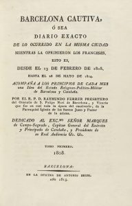 1815-1821. LIBRO: (BARCELONA-HISTORIA). FERRER, RAYMUNDO: BARCELONA CAUTIVA, Ó SEA DIARIO EXACTO DE LO OCURRIDO EN LA MISMA CIUDAD MIENTRAS LA OPRIMIERON LOS FRANCESES, ESTO ES, DESDE EL 13 DE FEBRERO DE 1808 HASTA EL 28 DE...