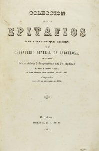 1842. LIBRO: (BARCELONA). COLECCION DE LOS EPITAFIOS MAS NOTABLES QUE EXISTEN EN EL CEMENTERIO GENERAL DE BARCELONA, SEGUIDA DE UN CATÁLOGO DE LAS PERSONAS MAS DISTINGUIDAS CUYOS RESTOS YACEN... Barcelona: Imp. A. Brusi, 1842....