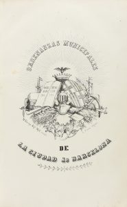 1857. LIBRO: (BARCELONA). ORDENANZAS MUNICIPALES DE LA CIUDAD DE BARCELONA. Barcelona: Imp. Nueva, de Jaime Jepús y Ramon Villegas, 1857. 4º menor. 199 p., 12 p., IV p. Puntos de óxido. Enc. en pasta española. *B06-15.