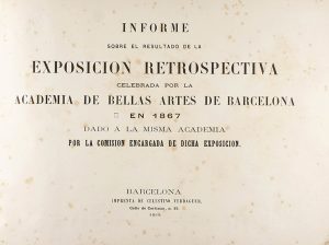 1868. LIBRO: (BARCELONA). MANJARRÉS, JOSÉ DE: INFORME SOBRE EL RESULTADO DE LA EXPOSICIÓN RETROSPECTIVA CELEBRADA POR LA ACADEMIA DE BELLAS ARTE DE BARCELONA EN 1867, DADO A LA MISMA ACADÉMIA POR LA COMISIÓN ENCARGADA DE...