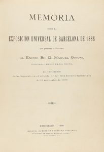 1889. LIBRO: (BARCELONA-EXPOSICION UNIVERSAL). GIRONA, MANUEL: MEMORIA SOBE LA EXPOSICIÓN UNIVERSAL DE BARCELONA DE 1888. Barcelona: Imp. Henrich y Compa, 1889. 4º mayor. 107 p. Enc. en plena piel, hierros dorados en...